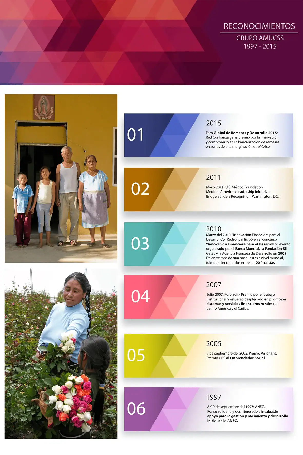 Desde1992, AMUCSS ha participado en la creación, operación y supervisión de sociedades financieras comunitarias e intermediarios, así como de organismos de integración, para contribuir a inclusión financiera de las familias rurales a través de una distribución más óptima de los servicios y productos en zonas de difícil acceso